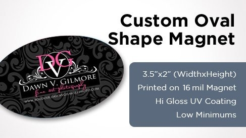 Why do boring rectangle magnets when you can do Oval Shape magnets. Just setup the artwork with the proper die-cut line and we take care of cutting it out to that die line.