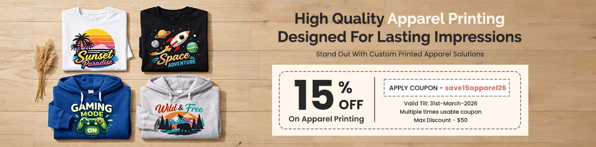 15% Off on Apparel Printing (max $50)