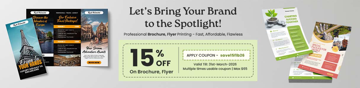 15% Off on All Flyer & Brochure (max $65)