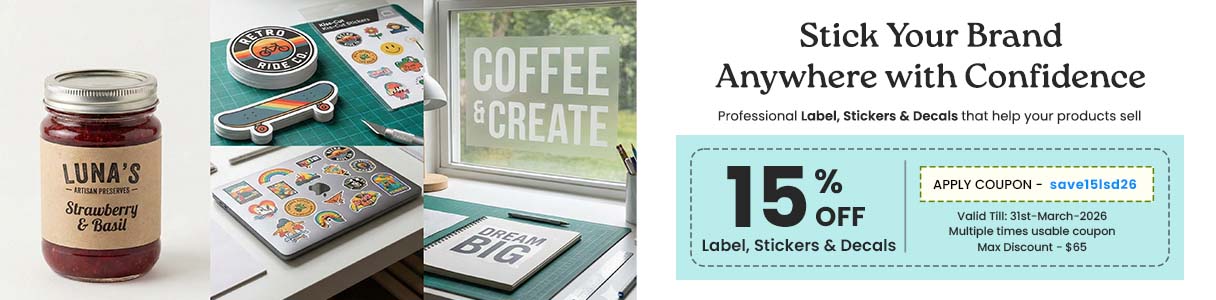 15% Off on All Label, Stickers & Decals (max $65)