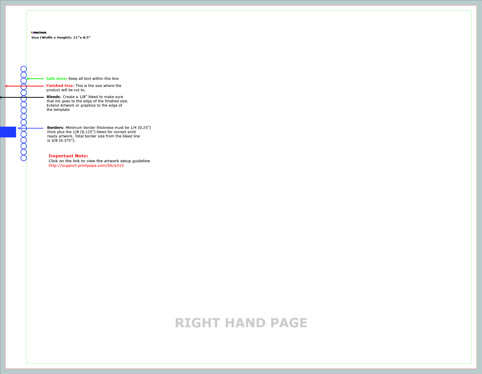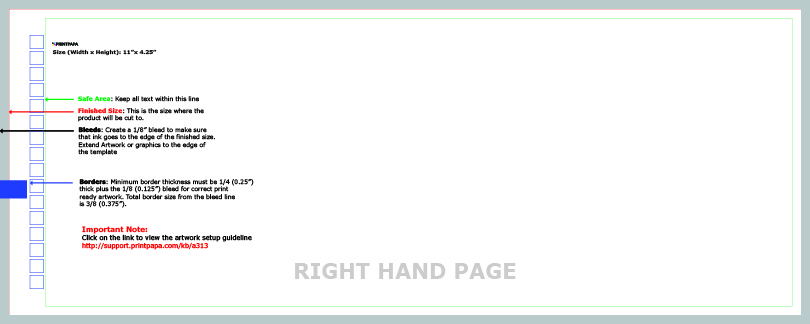 These are guideline templates and will help you jump start the design work in your favorite design tool. To use these templates you need to be proficient in using Adobe Illustrator or Photoshop. We have some layout templates in Microsoft Publisher. Templates are eps or publisher files that provide information on size, layout, bleed, safety zone, and any folding or mailing guidelines.